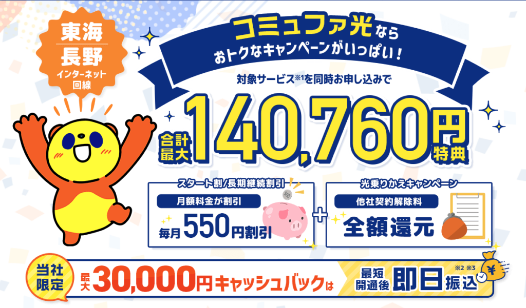- 5.6 ⑥コミュファ光(アウンカンパニー)|東海エリア特化!独自回線で速度安定&最大3万円還元される