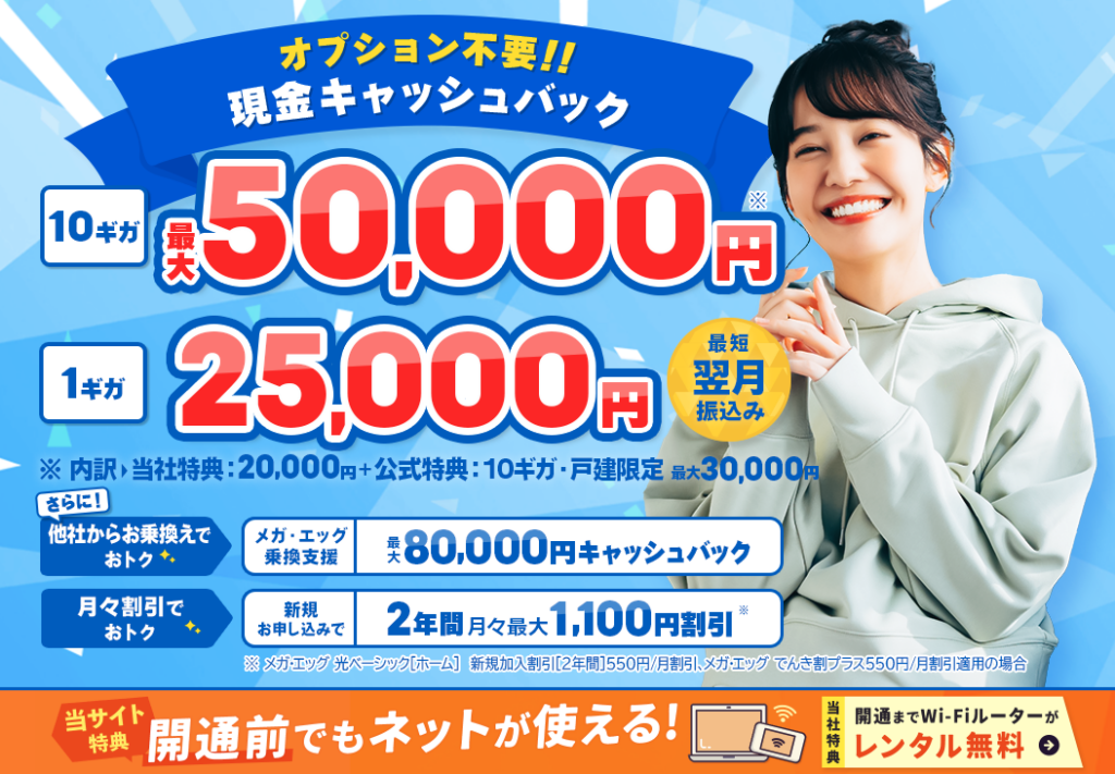 最大50,000円 / 10ギガ 最大42,000円 / 1ギガ |