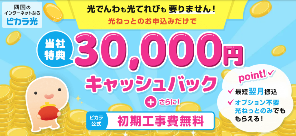 光回線のキャッシュバックは、うまく選べば「初期費用の負担を一気に減らせる」強力な特典です。
