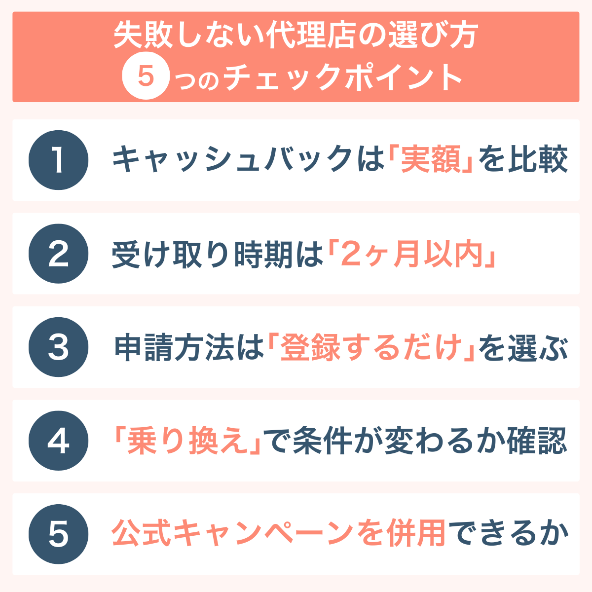 - 現金キャッシュバックを最も多く受け取りたいなら「代理店」